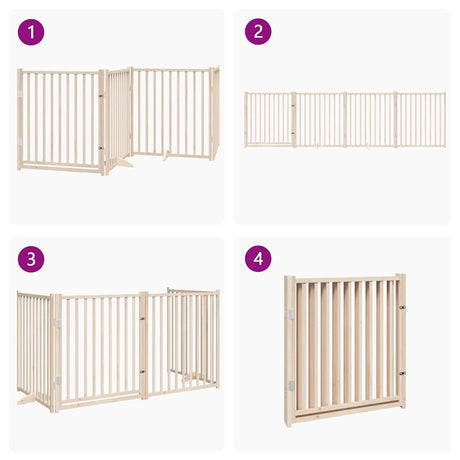 Dog Gate with Door Foldable 4 Panels 320 cm Solid Wood Fir