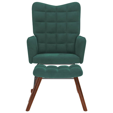 Rocking Chair with Stool Dark Green Velvet