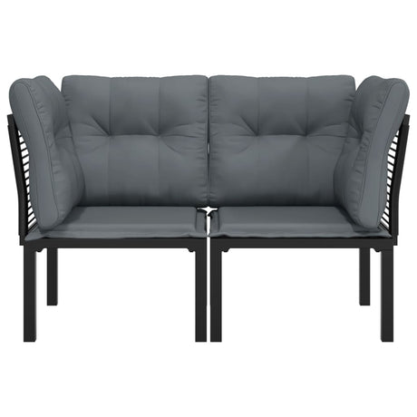 Garden Corner Chairs with Cushions 2 pcs Black&Grey Poly Rattan