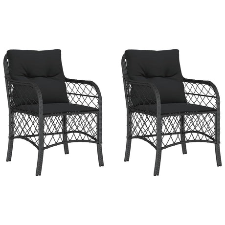 Garden Chairs with Cushions 2 pcs Black Poly Rattan