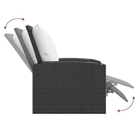 Reclining Garden Chairs 2 pcs with Cushions Black Poly Rattan