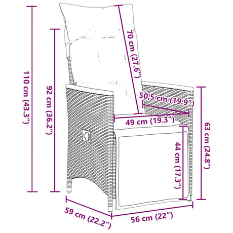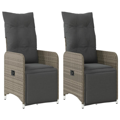 Reclining Garden Chairs 2 pcs with Cushions Grey Poly Rattan