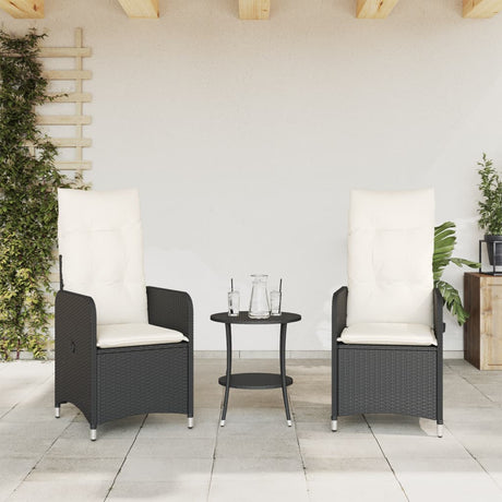 Reclining Garden Chairs 2 pcs with Table Black Poly Rattan