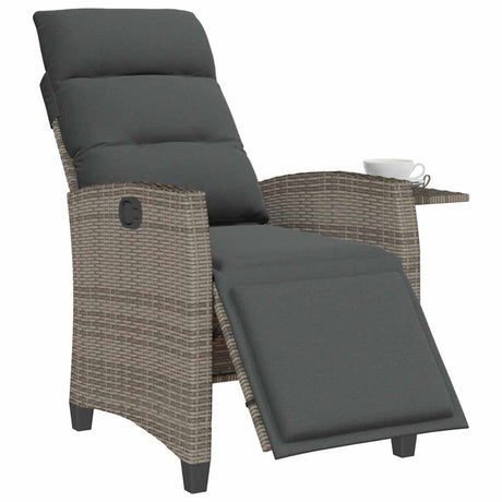 Reclining Garden Chair with Side Table Grey Poly Rattan