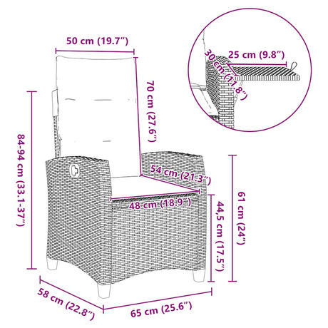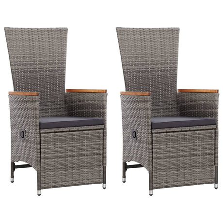 Reclining Garden Chairs 2 pcs with Cushions Poly Rattan Grey