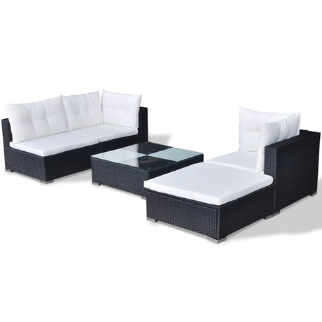 5 Piece Garden Lounge Set with Cushions Poly Rattan Black