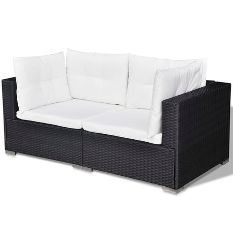 2 Piece Garden Sofa Set with Cushions Black Poly Rattan