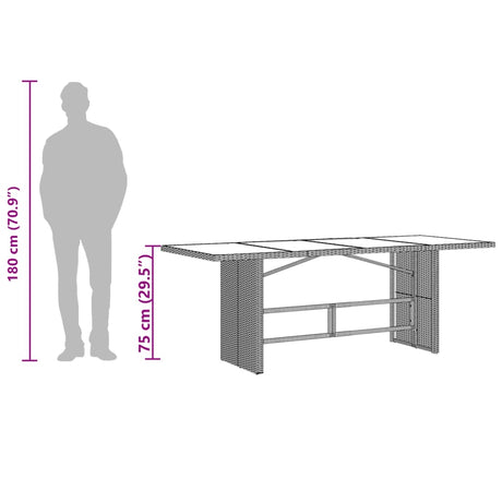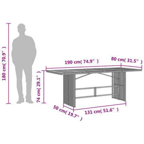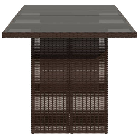 Garden Table with Glass Top Brown 190x80x75 cm Poly Rattan