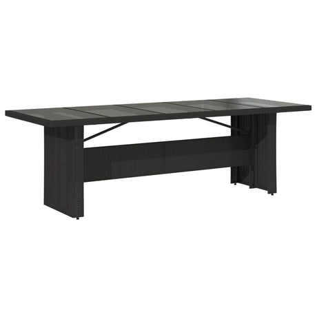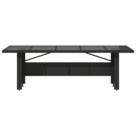 Garden Table with Glass Top Black 240x90x75 cm Poly Rattan
