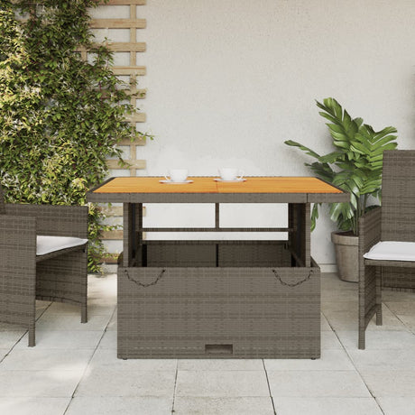 Garden Table Grey 110x110x71 cm Poly Rattan and Acacia Wood