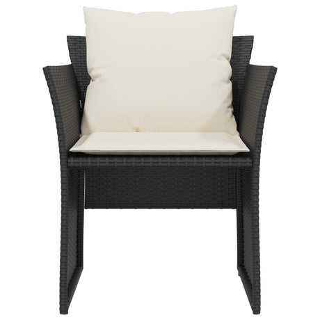 3 Piece Bistro Set with Cushions Black Poly Rattan