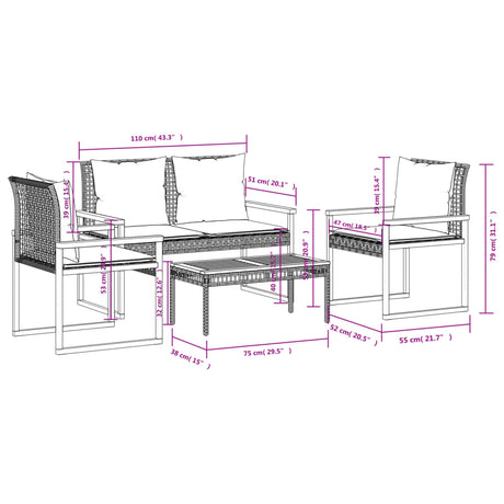 4 Piece Garden Lounge Set with Cushions Mix Beige Poly Rattan