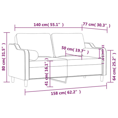 2-Seater Sofa with Throw Pillows Light Grey 140 cm Fabric