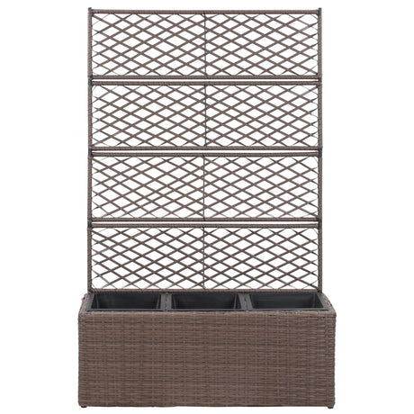 Trellis Raised Bed with 3 Pots 83x30x130 cm Poly Rattan Brown