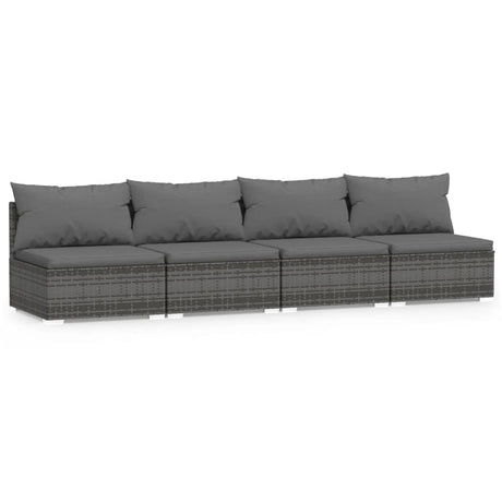4-Seater Sofa with Cushions Grey Poly Rattan