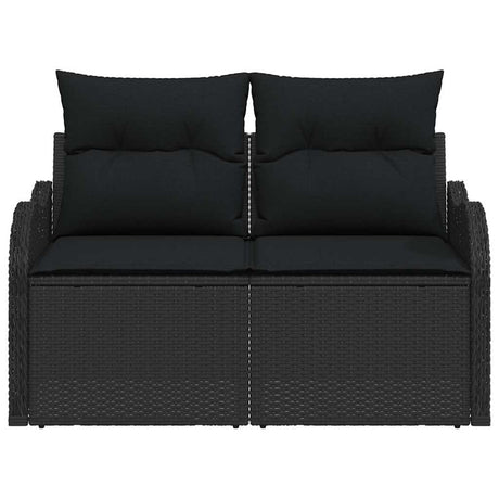 Garden Sofa with Cushions 2-Seater Black Poly Rattan