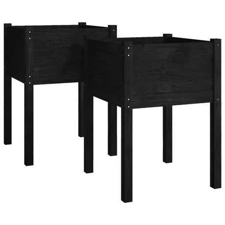 Garden Planters 2 pcs Black 50x50x70 cm Solid Pinewood