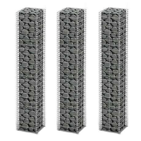 Gabion Set 3 pcs Galvanised Wire 25 x 25 x 150 cm