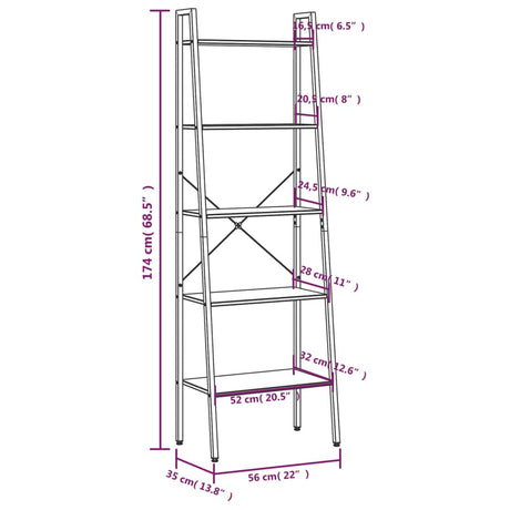 5-Tier Standing Shelf Light Brown and Black 56x35x174 cm