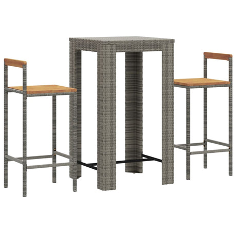 3 Piece Garden Bar Set Grey Poly Rattan&Solid Wood Acacia