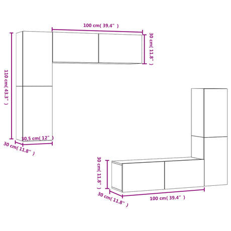 6 Piece TV Cabinet Set Concrete Grey Engineered Wood
