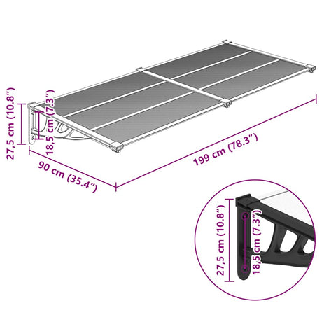 Door Canopy Black and Transparent 199x90 cm Polycarbonate