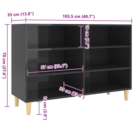 Sideboard High Gloss Black 103.5x35x70 cm Engineered Wood