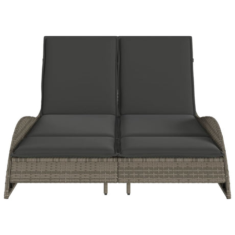 Sun Lounger with Cushions Grey 114x205x73 cm Poly Rattan
