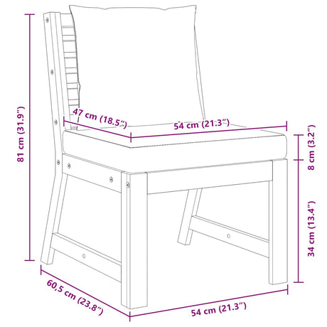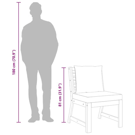 Sectional Middle Sofa with Cream Cushion Solid Acacia Wood