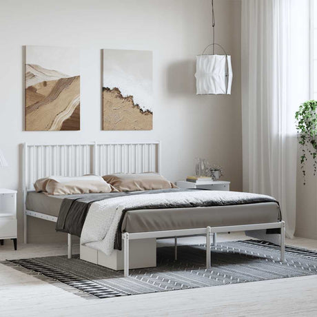 Metal Bed Frame without Mattress with Headboard White 135x190 cm