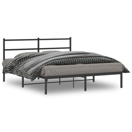 Metal Bed Frame without Mattress with Headboard Black 150x200 cm