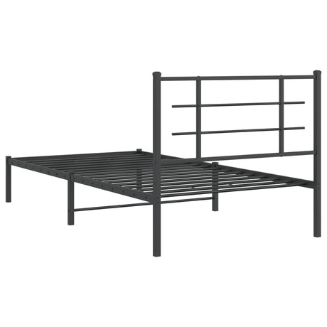 Metal Bed Frame without Mattress with Headboard Black 107x203 cm King Single