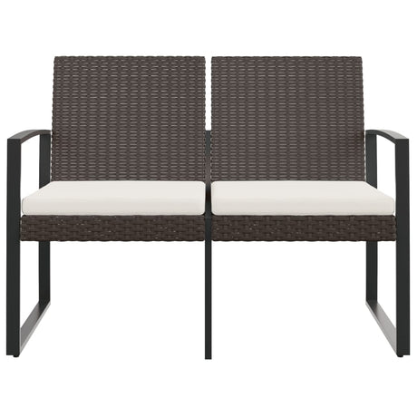 2-Seater Garden Bench with Cushions Brown PP Rattan