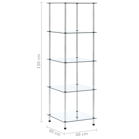 5-Tier Shelf Transparent 40x40x130 cm Tempered Glass
