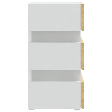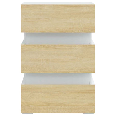 LED Bedside Cabinet White and Sonoma Oak 45x35x67 cm Engineered Wood