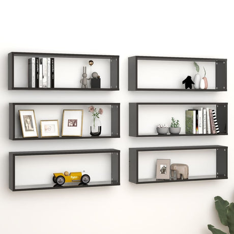 Wall Cube Shelves 6 pcs High Gloss Black 80x15x26.5cm Engineered Wood