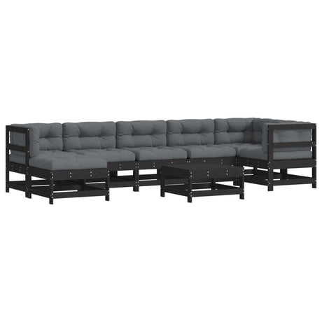 8 Piece Garden Lounge Set with Cushions Black Solid Wood