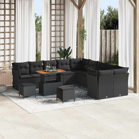 13 Piece Garden Dining Set with Cushions Black Poly Rattan