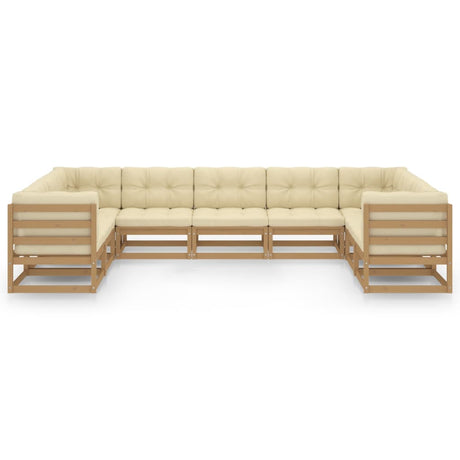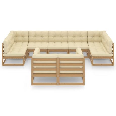 10 Piece Garden Lounge Set&Cushions Honey Brown Solid Pinewood