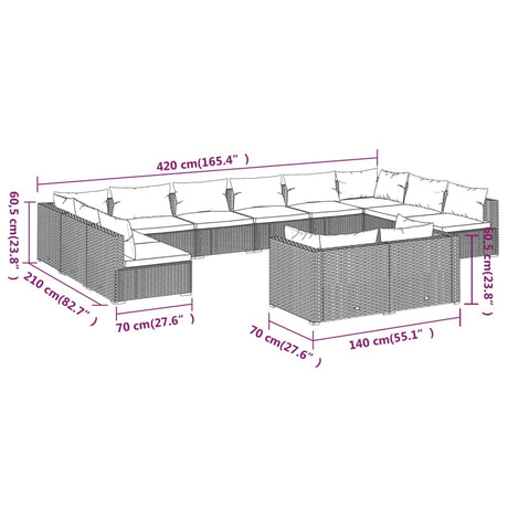 12 Piece Garden Lounge Set with Cushions Grey Poly Rattan