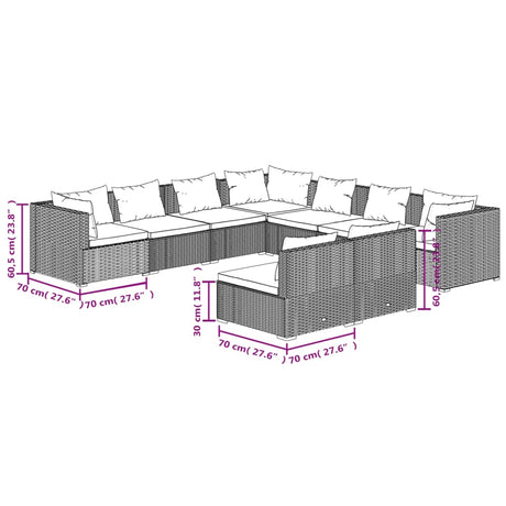 12 Piece Garden Lounge Set with Cushions Poly Rattan Grey
