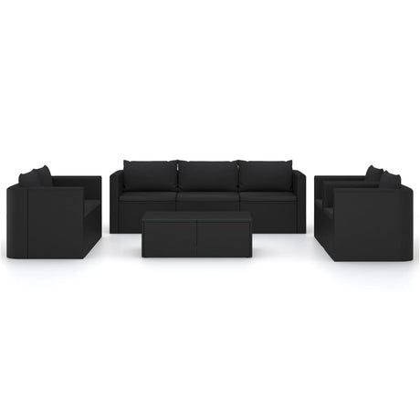 9 Piece Garden Lounge Set with Cushions Poly Rattan Black
