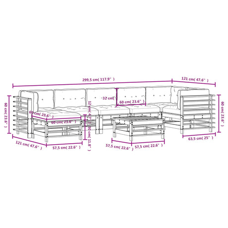 8 Piece Garden Lounge Set with Cushions White Solid Wood