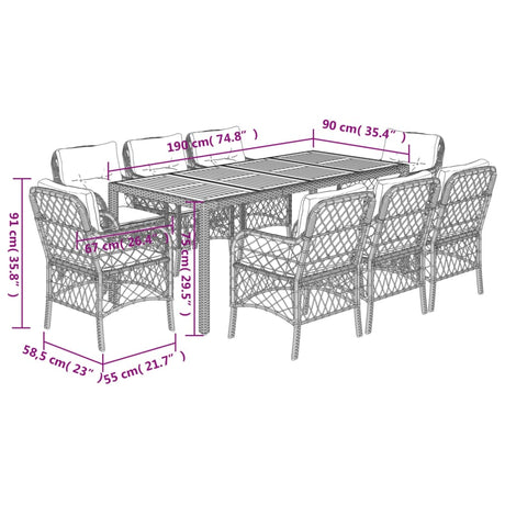9 Piece Garden Dining Set with Cushions Black Poly Rattan