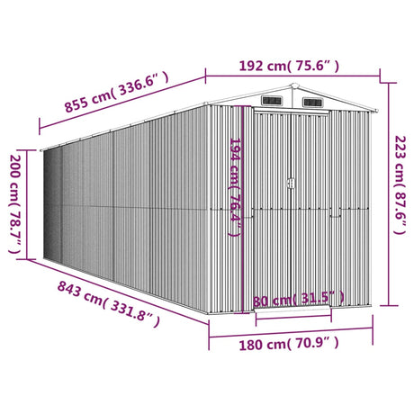 Garden Shed Anthracite 192x855x223 cm Galvanised Steel