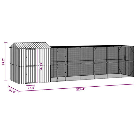 Aviary with Extension Silver 1042.5x107x212 cm Steel