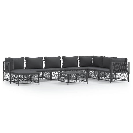 9 Piece Garden Lounge Set with Cushions Anthracite Steel