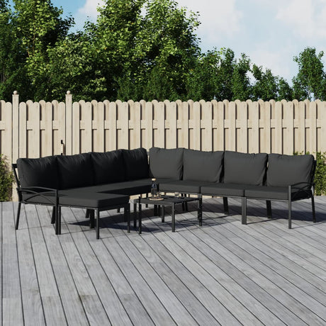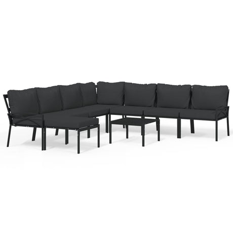 9 Piece Garden Lounge Set with Grey Cushions Steel