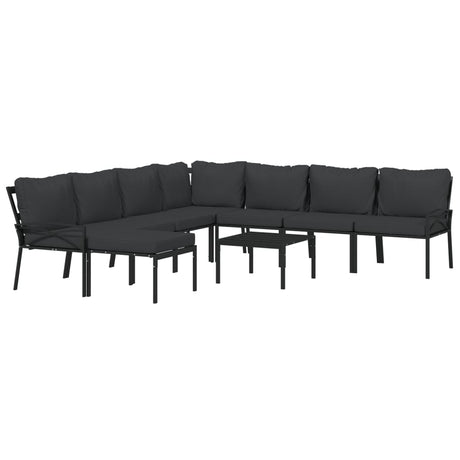 Garden Sofa Set 9 pcs Black Poly rattan and powder-coated steel