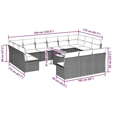 13 Piece Garden Sofa Set with Cushions Beige Poly Rattan